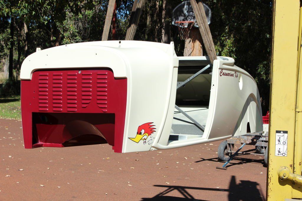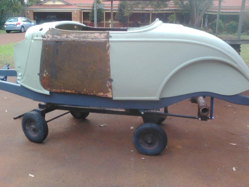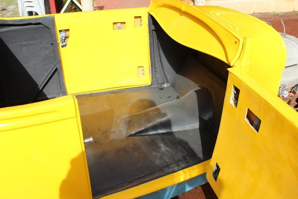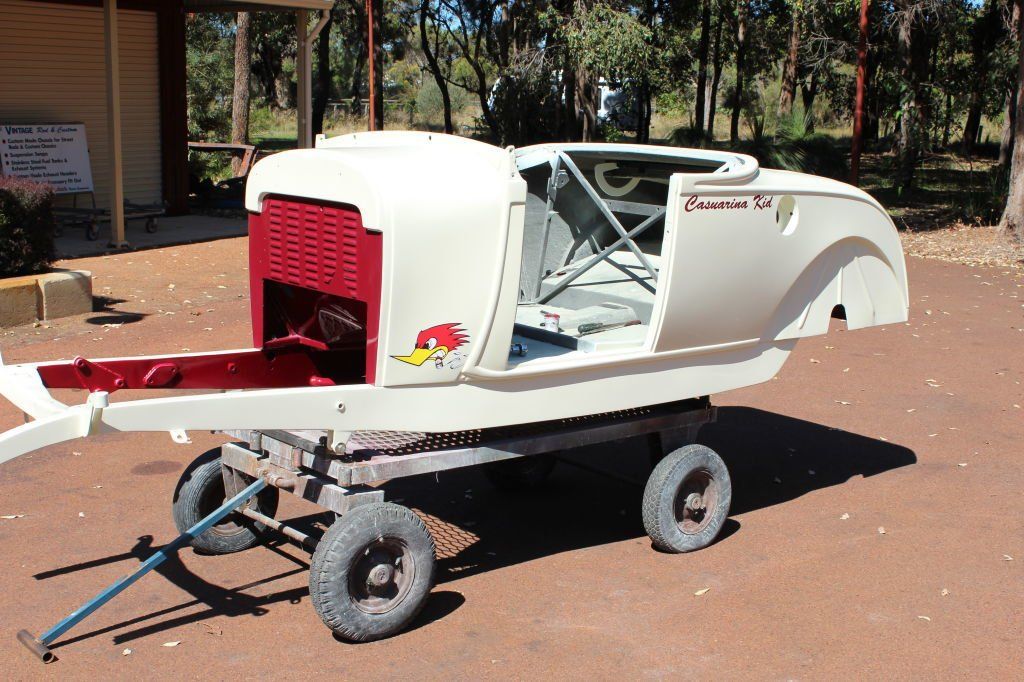 BODY FEATURES: Fibreglass reproduction, 3 inch longer doors and cockpit area(roadster, roadster pickup) 35 inch doors(tourer), fully steeled out with operational doors and boot lid, intrusion bars and burst-proof locks in doors, dashboard fitted and under dash 90 degree brake pedal and booster mount, option of standard or 4 inch recessed firewall.
