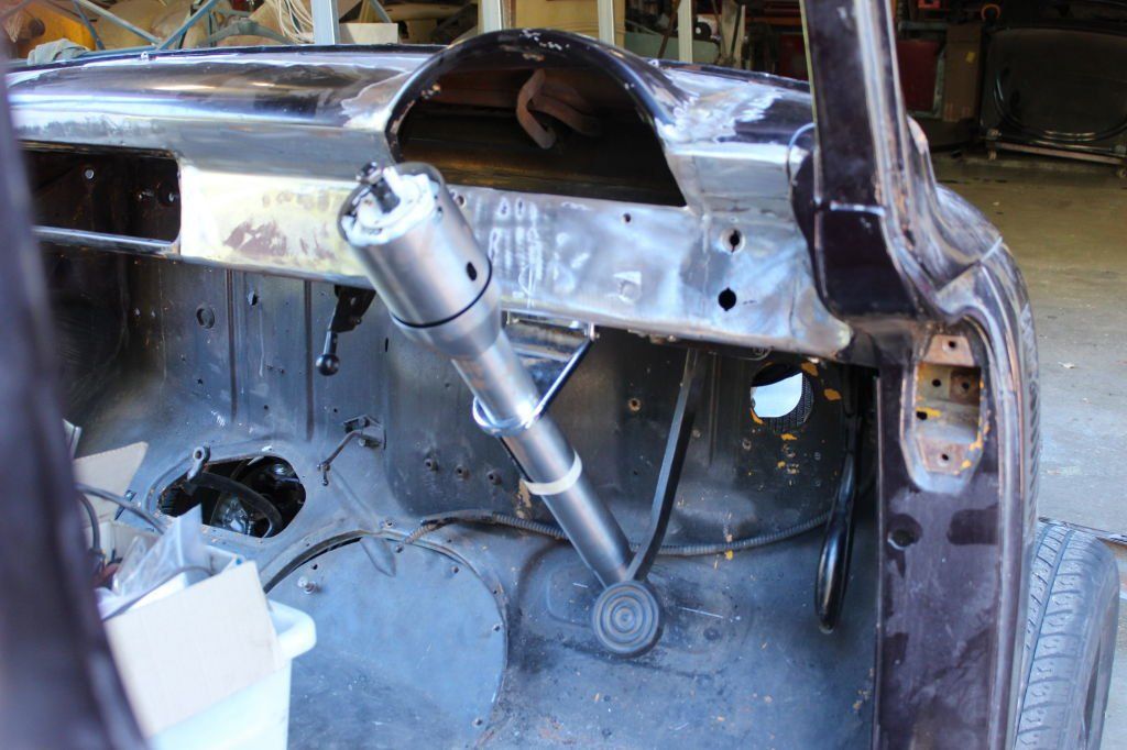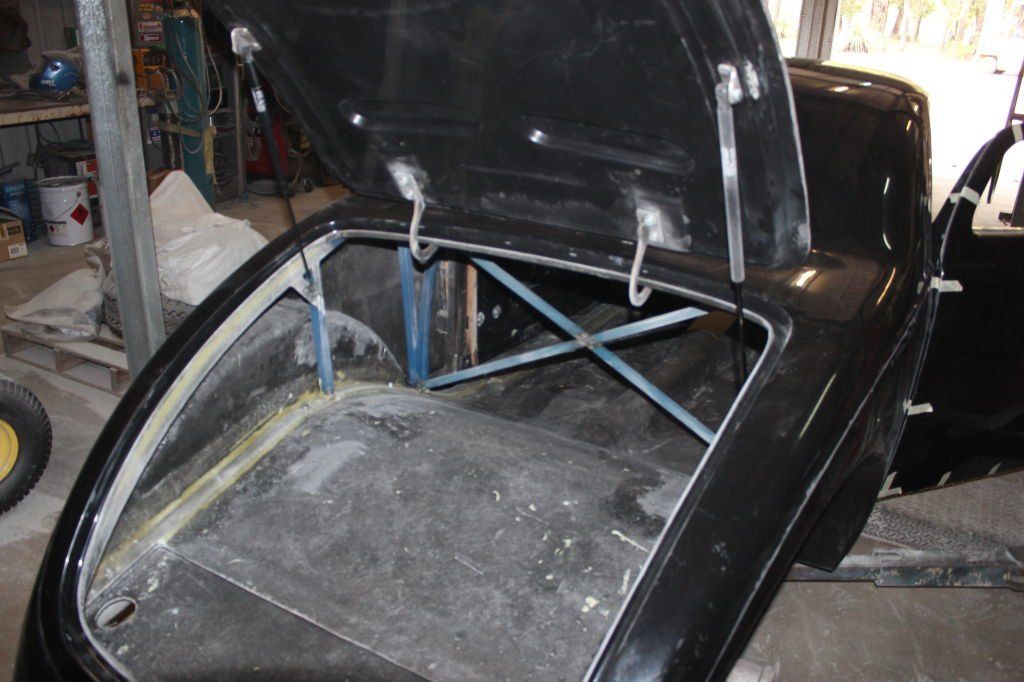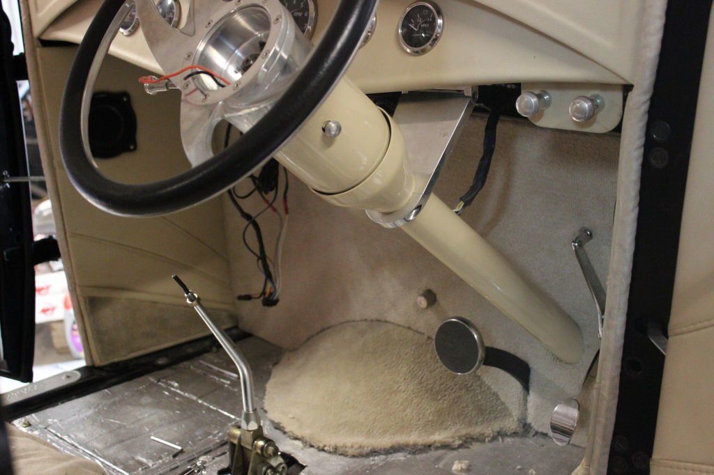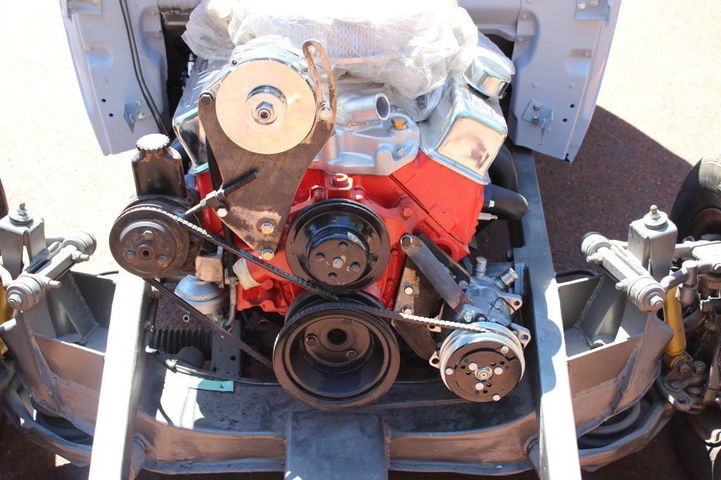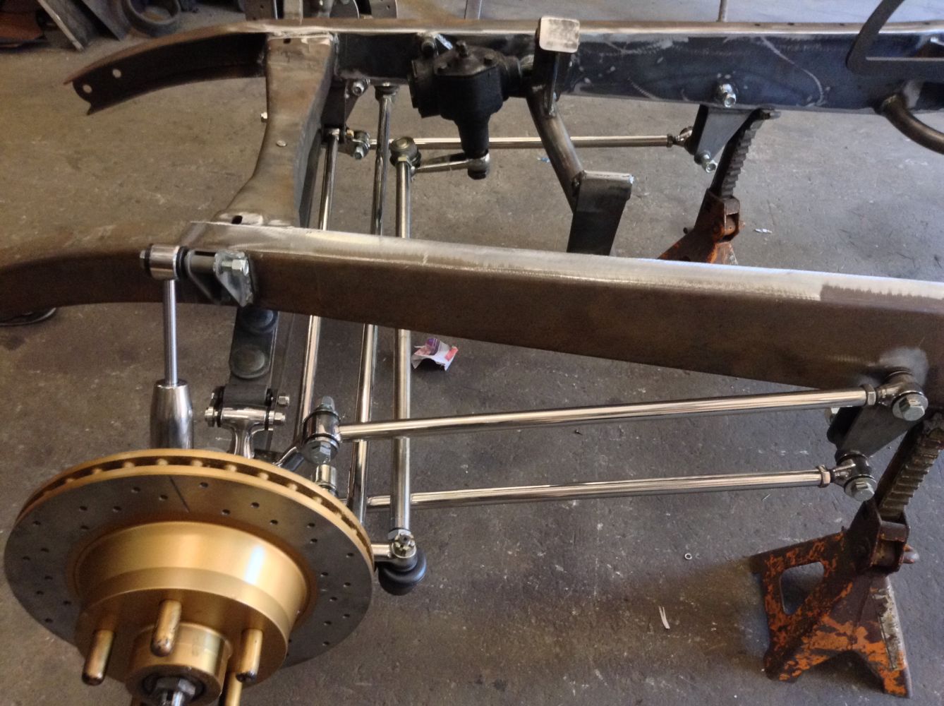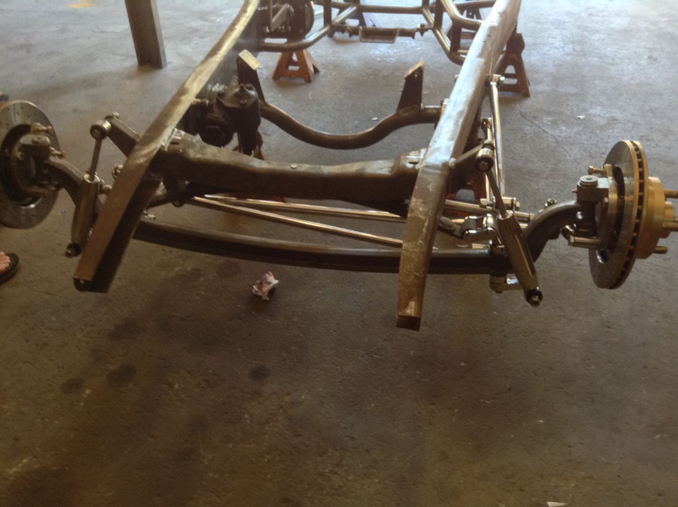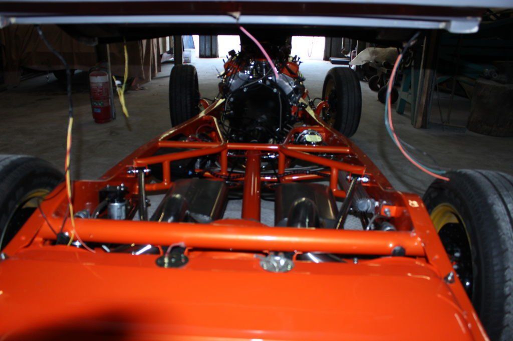 CHASSIS FEATURES: 107 inch wheel base, 1932 Hiboy Style, profile cut fabricated chassis rails, model A. dropped front cross member, tubular center “X” member , tubular rear cross member with shock mounts, rear chassis horns to mount 1932 fuel tank, 32 inch engine bay, fully welded.